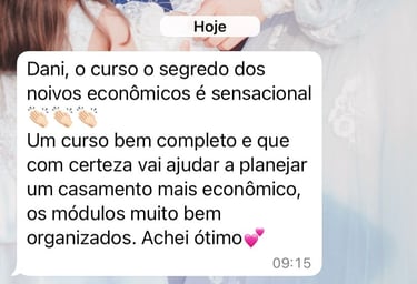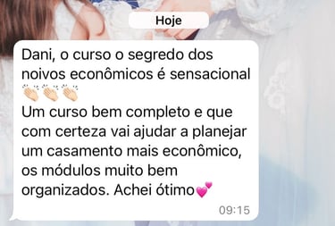O mais incrível é que, com tudo que aprendi, hoje eu vejo que é totalmente possível fazer um casamento tão completo quanto o meu gastando menos de R$15 mil — com as decisões certas, e com um plano claro.